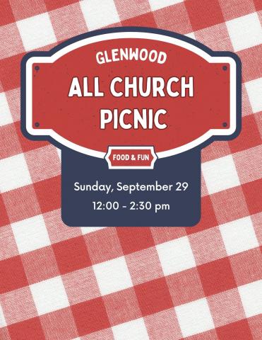 All Church Picnic on Sunday, September 29th from noon to 2:30pm.