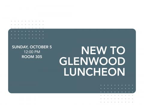 Join us for the New to Glenwood Luncheon happening on Sunday, October 5 at 12:00pm in Room 305.